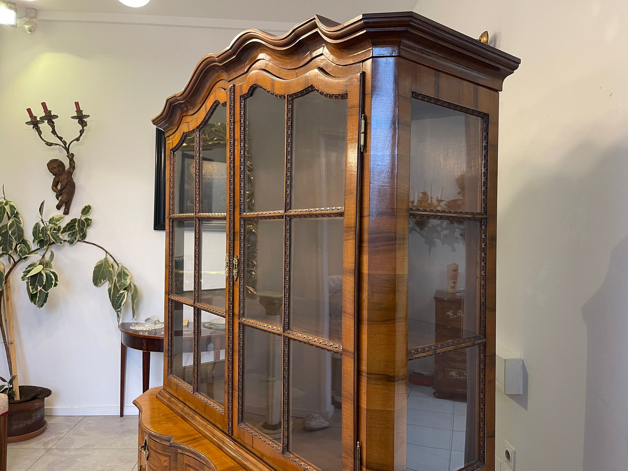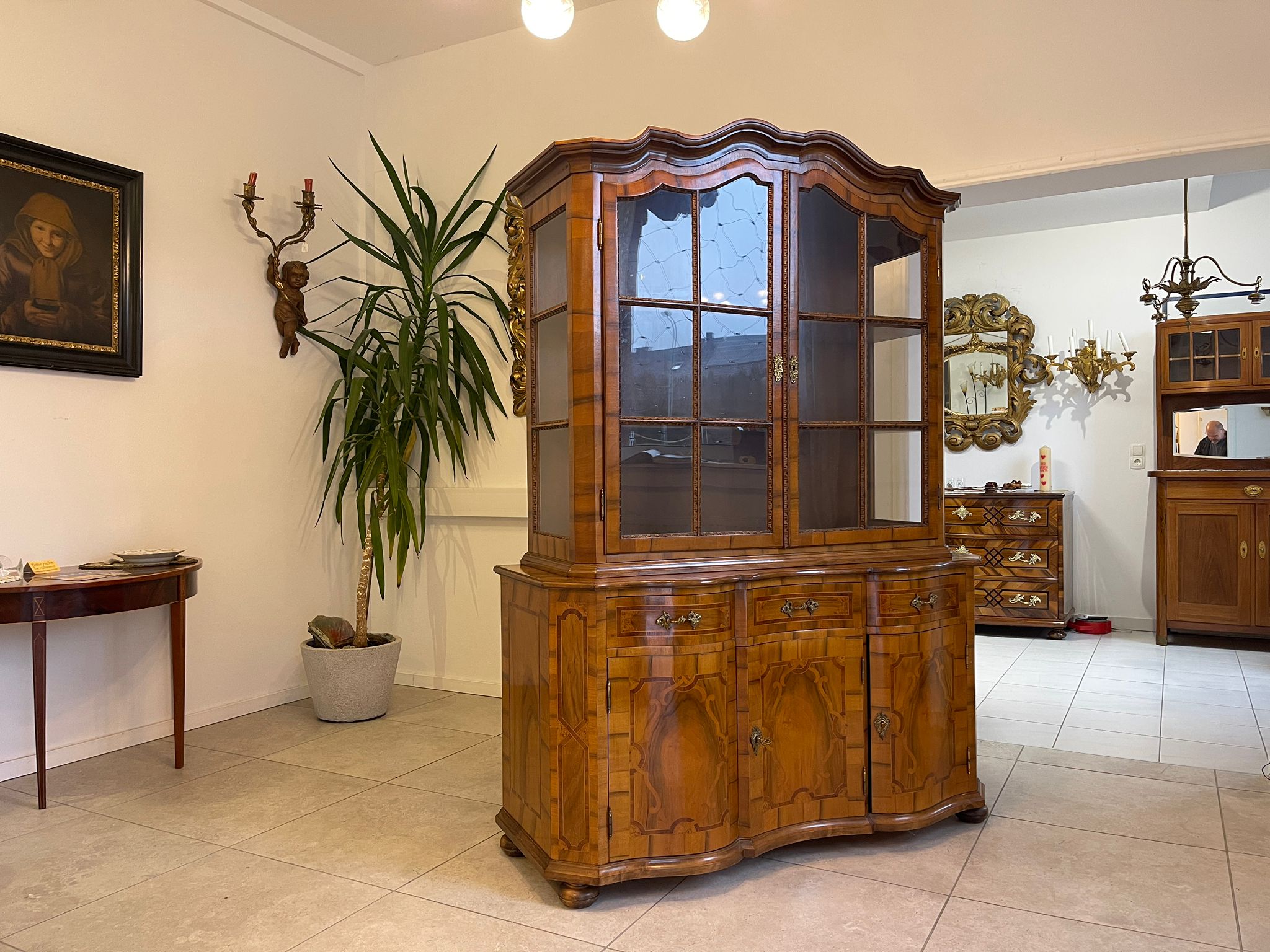 Barocke Aufsatz Anrichte Glasvitrine Bücherschrank Marketerien A5440