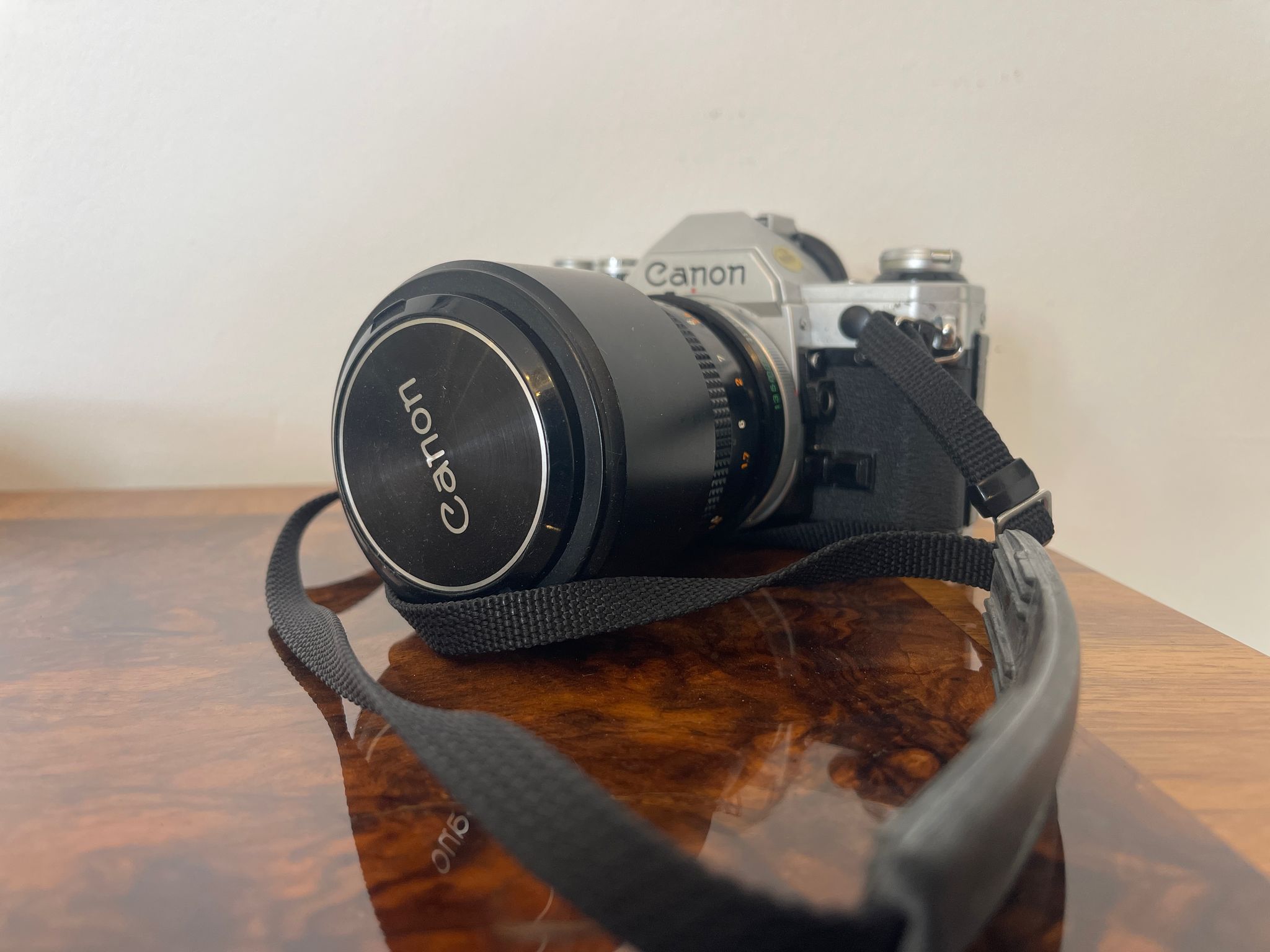 - Inklusive: Canon FD 135mm f/3.5 Teleobjektiv, beliebt für Porträtaufnahmen