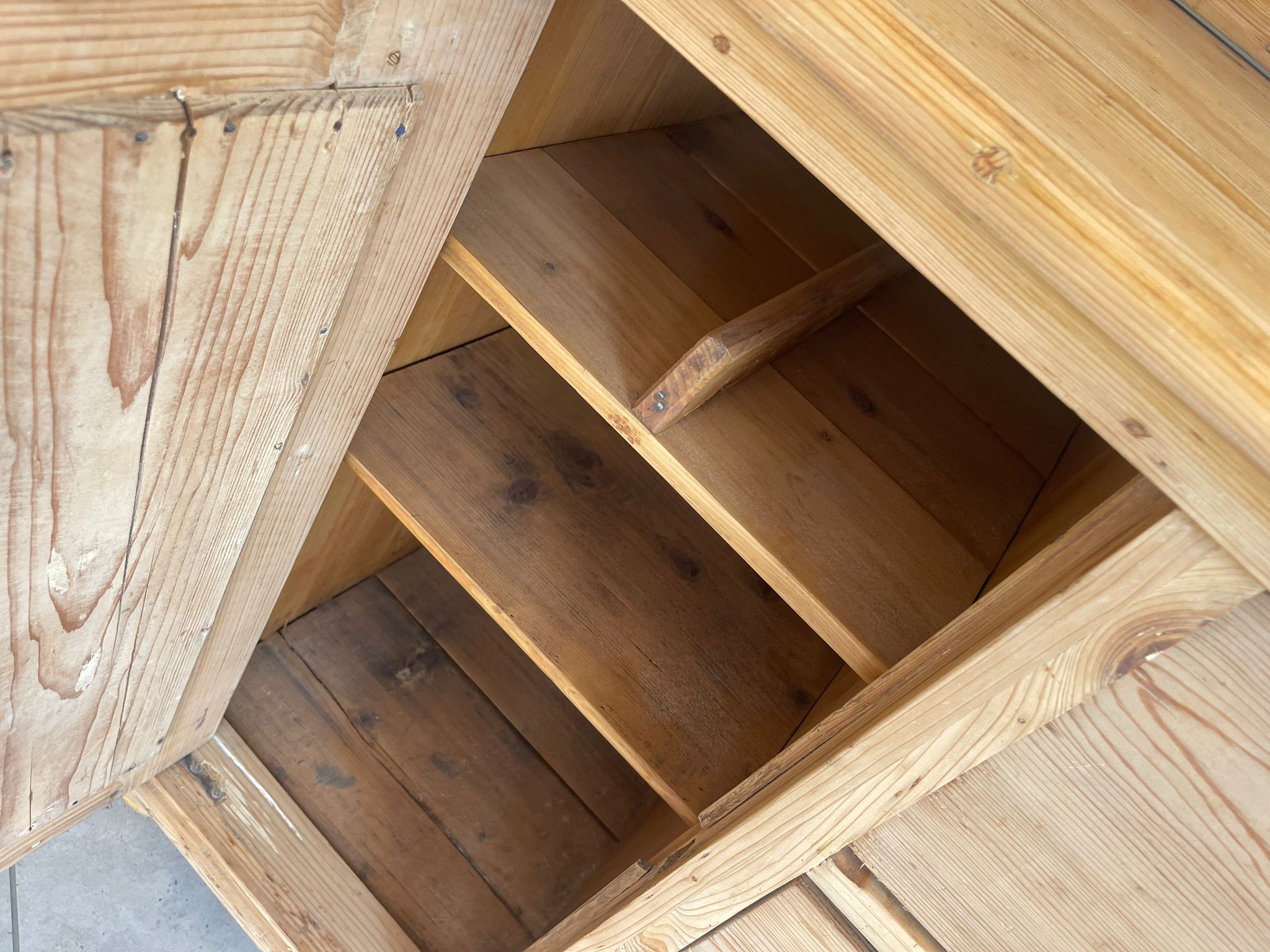 Zum Verkauf steht ein originales sehr altes gut erhaltenes Biedermeier Küchenbuffet / Naturholzschrank - welches sehr geräumig / aufwendig aus Fichtenholz gefertigt wurde.