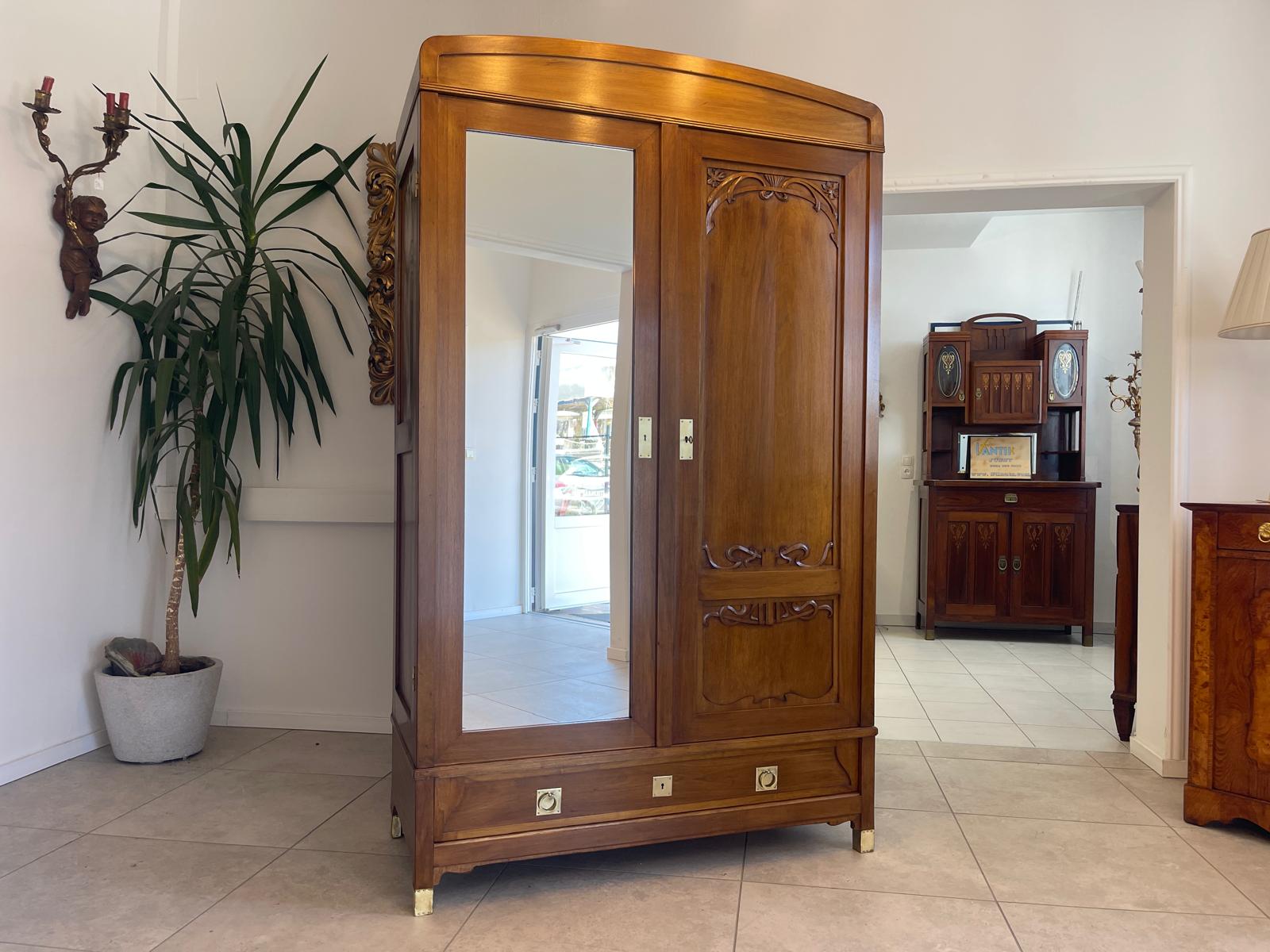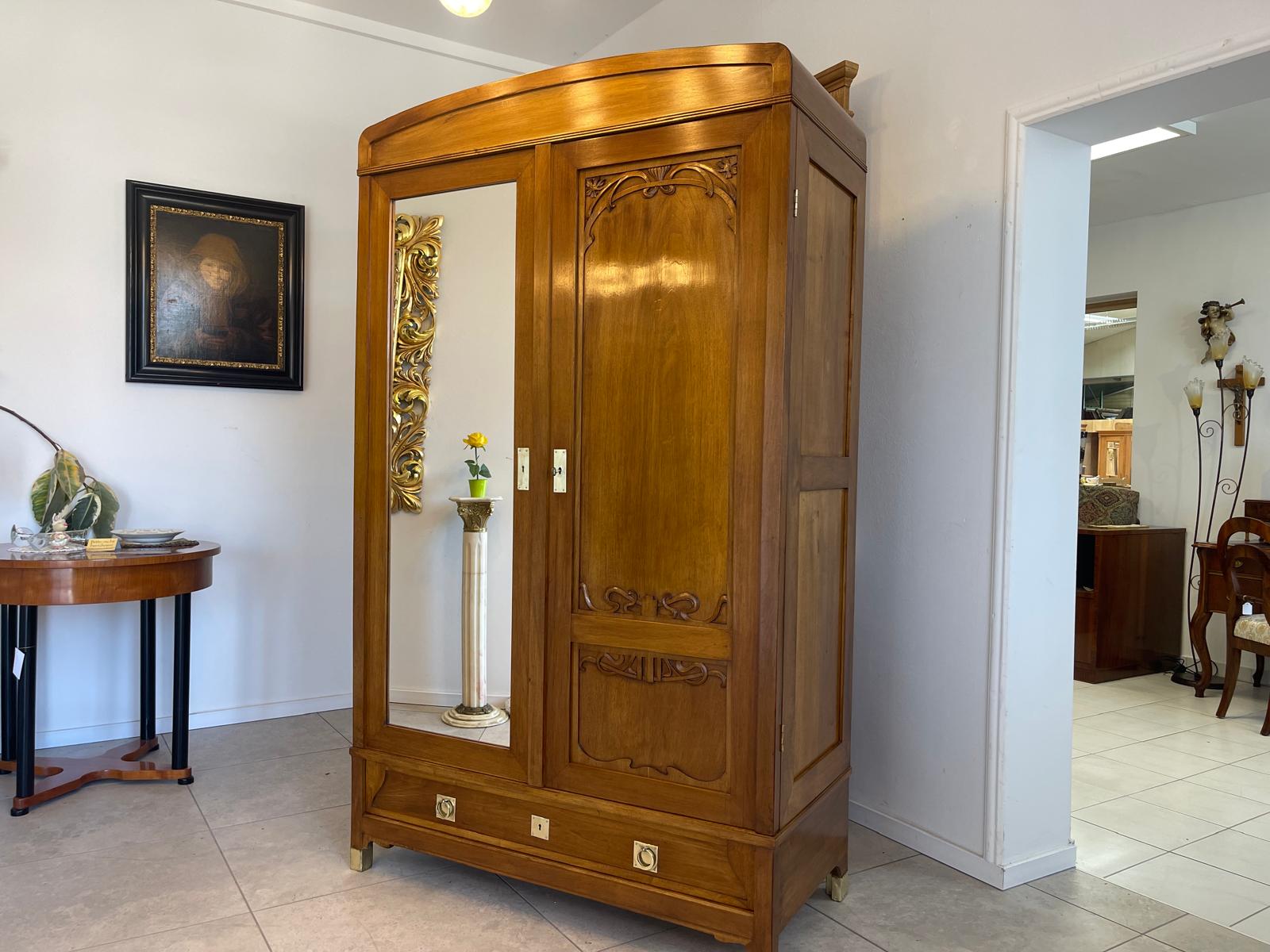 Dieser Schrank wurde erst kürzlich komplett aufbereitet und beeindruckt nun durch seine florale schnitzereien / Messingornamenten an seiner Front.